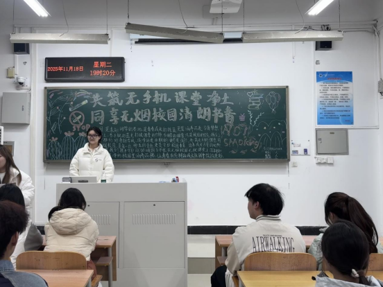 各班级团支部响应学校团委号召,精心策划团课,通过科普视频与权威数据,直观呈现手机过度使用对学习、视力及颈椎的负面影响,展示吸烟致病案例,让同学们深刻认识手机干扰与烟草危害。